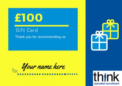 Refer a Vacancy: For every vacancy referred to us, which we successfully fill, you'll receive £100 in vouchers of your choice.