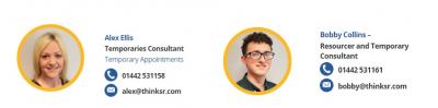 Established at the start of 2016, our Temp desk has gone from strength to strength and we now have two Consultants providing temporary workers across the local area. Our online timesheet system has recently gone live and is just one of the many reasons to come to Think for your Temps.....